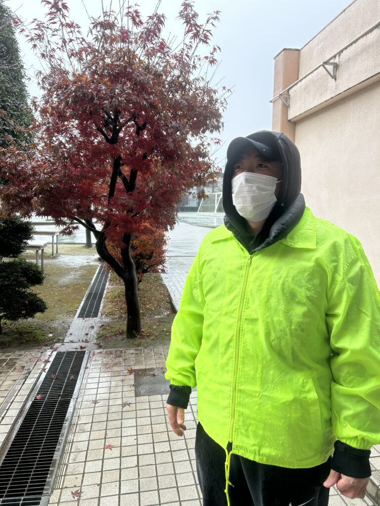 当日は雨が降っており、肌寒い一日となりましたが、私は主に大会会場周辺の交通誘導係を担当しました。鮮やかなジャンパーを着て、元気いっぱい、こどもたちや保護者の皆さんが安全に会場入りできるようお手伝いをさせていただきました。